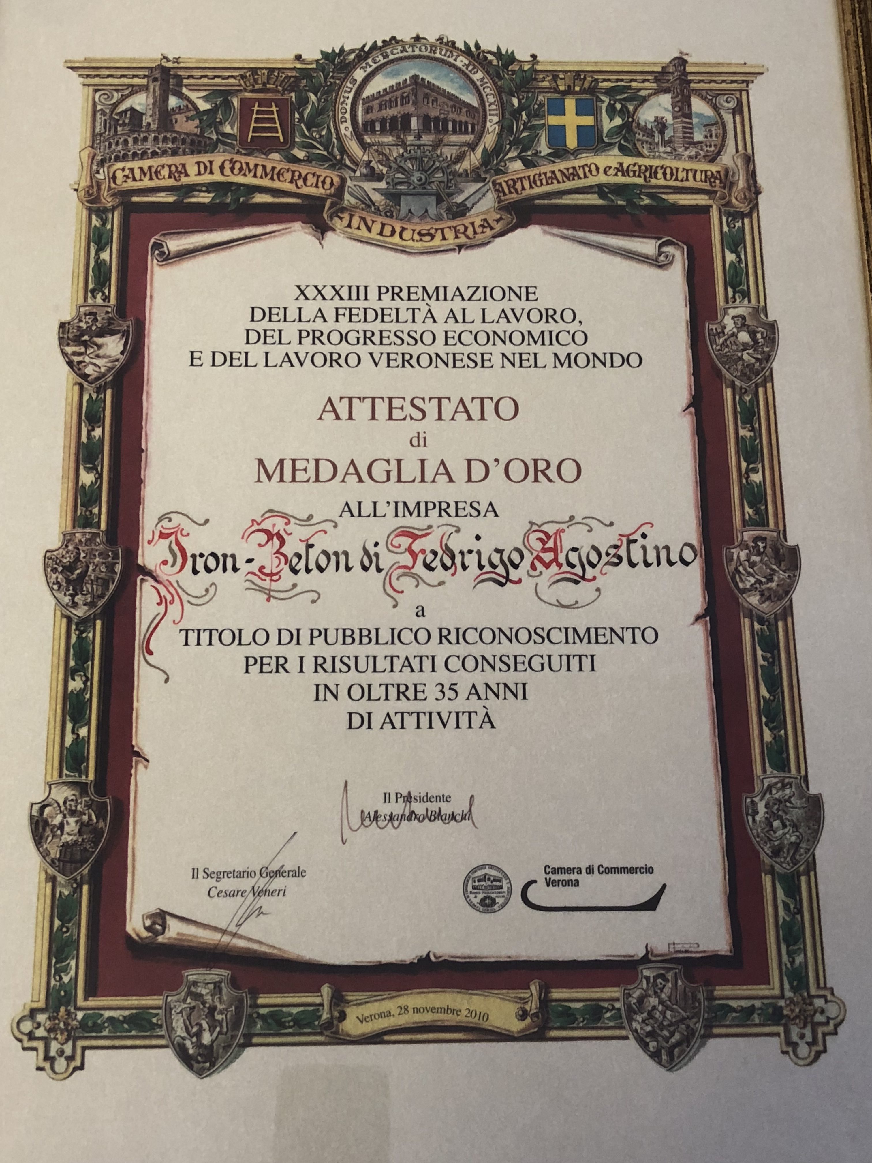 Iron Beton Srl si pone come esempio di impegno duraturo verso la qualità e l’innovazione, dimostrando la nostra volontà di continuare a crescere e a contribuire positivamente al panorama industriale. Questo riconoscimento ci motiva ulteriormente a perseguire la nostra missione di eccellenza, ispirando fiducia nei nostri clienti e consolidando la nostra posizione di leadership nel settore. Con gratitudine, accettiamo questa medaglia d’oro come un segno tangibile del nostro impegno e della nostra costante dedizione a superare gli standard più elevati.